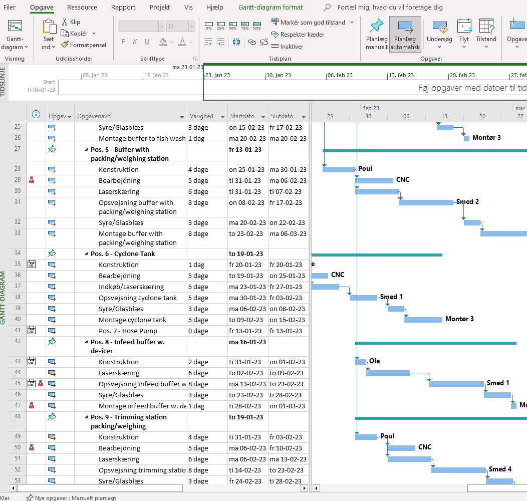 - Gantt-planlægning